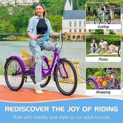 - ★Large Capacity Basket: Slsy tricycle has a large rear basket, load up the conveniently basket with groceries, supplies, or whatever suits your daily shopping while staying in shape.