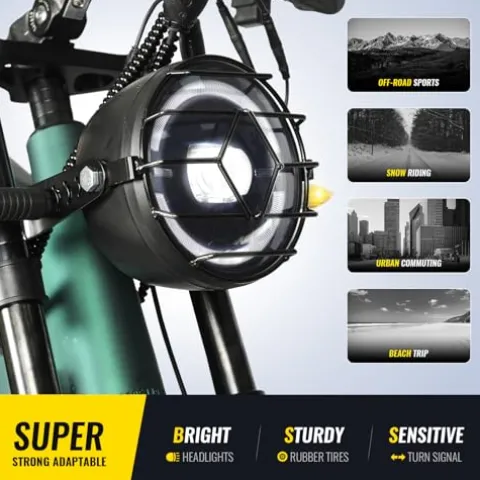 - 1200W POWERFUL MOTOR —Equipped with 1200W brushless motor,more powerful,and comes with 20”d×4”w anti-slip tires, the eletirc dirt bike shows high performance climbing capabilities,can be taken in all-terrain with ease like rain,snow,gravel,beach,mountain,suits your multiple needs.