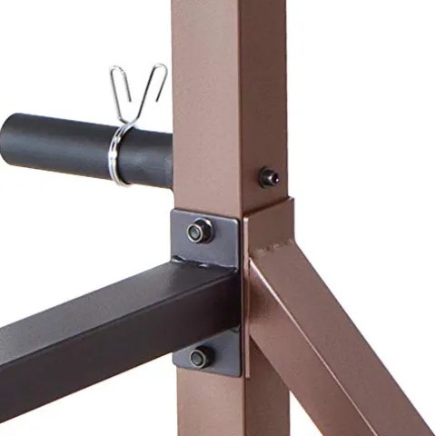 - ALL-IN-ONE STATION – This gym system combines different strength-building machines. This complete system features dip bars, a pull-up bar, a kipping bar, resistance band anchors, and barbell safety catches – everything you need for a full-body workout