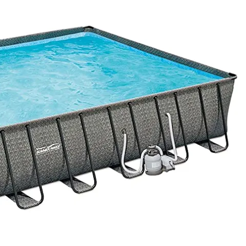 - SUMMER FUN: Splash the day away in the comfort and privacy of your own backyard with this above-ground frame pool that features a dark gray wicker pattern design to match any outdoor furniture and decor