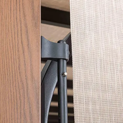 The Sunjoy 110105005 Pergola in a sophisticated Black/Brown finish enhances any outdoor space with its stylish design and practical features. This convertible top pergola boasts a slatted roof that promotes ventilation while providing shade, ensuring comfort on warm days. Crafted from durable steel, it features a sturdy frame that withstands the elements, supported by rust and weather-resistant materials. The pergola posts are designed with a heat transfer finish that mimics wood grain, adding an elegant touch to your patio or garden. With UV-resistant, high-quality fabric, this pergola combines functionality and aesthetics, making it the perfect addition to your outdoor living area.