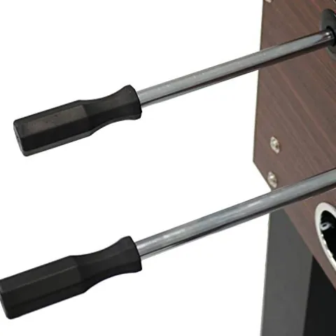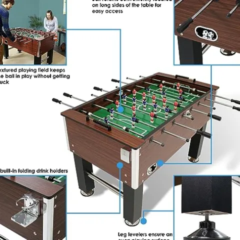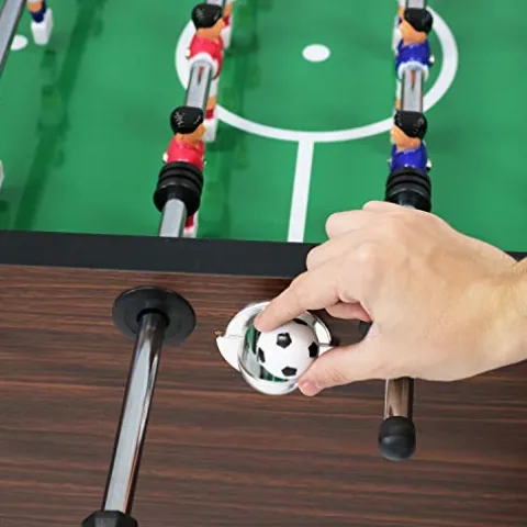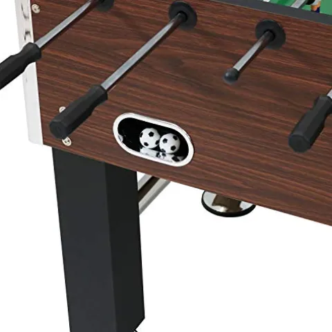 - Includes all game necessities: This game table includes 2 game balls, 4 leg levelers, players, manual score units, side ball returns, and plastic drink holders.