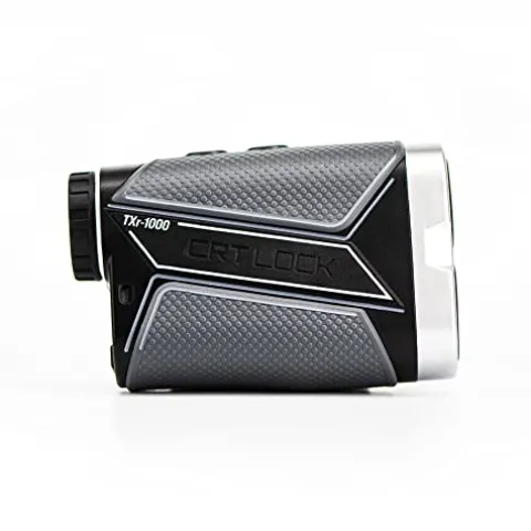 Enhance your golf game with the SuperStroke Golf TXr-1000 Slope Laser Rangefinder. This sleek black/gray rangefinder is packed with features such as a SLOPE SWITCH for easy slope mode adjustment, a MAGNETIC CART MOUNT for secure attachment, and a clear OLED display with 7x magnification for accurate readings up to 1,000 yards with a +/- 1 yard precision. The FLAG-LOCK TECHNOLOGY provides vibration feedback for target lock-on, while the rechargeable Type-C battery ensures convenience with a USB charging cord included. Built to withstand various weather conditions, this rangefinder is both shock and water resistant, making it an essential tool for any avid golfer looking to improve their accuracy on the course.