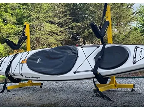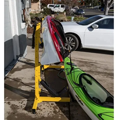 - This powder coated steel frame holds 2 kayaks, canoes or SUPs up to 175 lbs total.