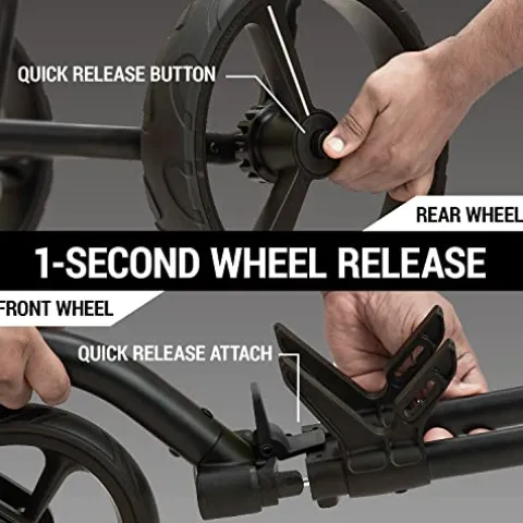 - 1-Sec Wheel Release – Easily removable wheels (a quick release button for the rear wheel and quick release attach design for the front wheel), a simple assembly design and the additional magnetic fasteners combined with the overall features to make it a truly unique cart.