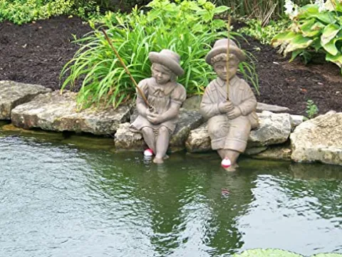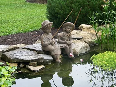 Enhance your garden with the charming Fishing Boy & Girl Cast Stone Statues, meticulously hand-crafted by The Best Industries in the USA. These stunning sculptures, finished in a classic iron hue, add a touch of whimsy and elegance to any outdoor space. Weighing 42 lbs for the boy and 37 lbs for the girl, they stand at impressive heights of 23 inches and 20.5 inches, respectively, ensuring they are a captivating focal point in your garden. Each statue comes complete with bamboo fishing poles and bobbers, designed to create a playful scene that resonates with nature lovers. The durable classic iron stain not only enhances their aesthetic appeal but also ensures these statues withstand the elements, making them a thoughtful gift idea for garden enthusiasts or a delightful addition to your own outdoor decor.