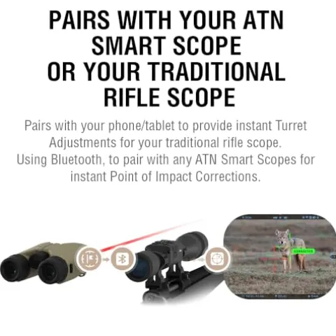 The ATN 10×42 Laser Ballistics Binocular combines advanced optics with cutting-edge technology, making it an essential tool for outdoor enthusiasts and professionals alike. With 10x magnification, it ensures precise target identification, while the enhanced OLED red display delivers exceptional brightness and color quality. The proprietary ProShield and EverLight anti-reflection lens coatings maximize light transmission for unparalleled optical clarity. This all-in-one device features an integrated laser rangefinder with a range of up to 3000 meters, and it seamlessly connects to a free mobile app for real-time ballistic calculations on both iOS and Android devices. Built for durability, the rugged construction is shockproof and coated with rubber armor for improved grip and protection. Experience the perfect blend of performance and innovation with this versatile binocular.