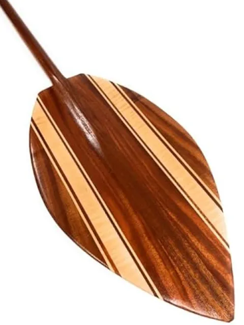 The Tikimaster Alii Design Koa Canoe Paddle, measuring 60 inches, is a beautifully crafted steersman paddle that embodies the spirit of local craftsmanship. Made from premium Koa wood, known for its durability and stunning grain patterns, this paddle not only enhances your canoeing experience but also adds a touch of elegance with its vibrant yellow finish. Designed for both functionality and aesthetics, the paddle provides excellent control and maneuverability on the water, making it an essential tool for any paddling enthusiast. Upgrade your canoeing gear with this exceptional piece that combines tradition and performance seamlessly.