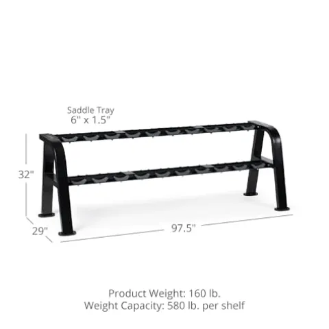- MULTI-LEVEL STORAGE: The 2-tiered free-weight rack features saddle-styled cradles that provide easy access and storage of various sized and shaped dumbbells.