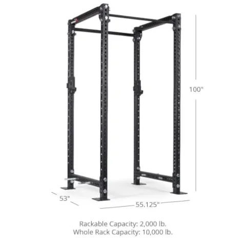 - DESIGNED SAFE. DESIGNED STRONG.: You are never more vulnerable as an athlete than when you are working out heavy, let alone maxing out. Our TITAN Series Power Rack, built with oversized 1-inch hardware, boasts a rackable capacity of 2,000-pounds and a total rack capacity up to 10,000-pounds ensuring that you have all the support you could ever need throughout your workout.