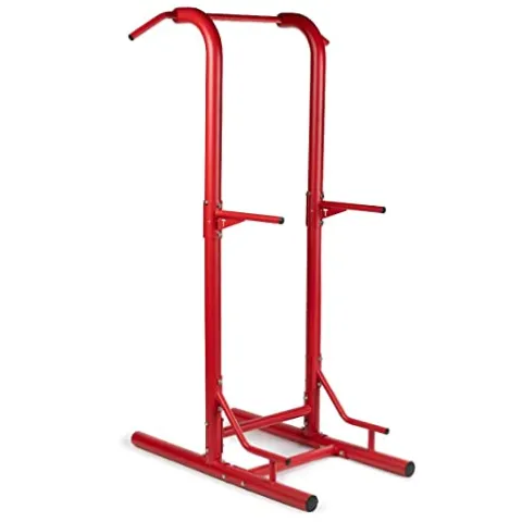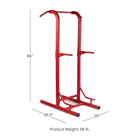 Enhance your outdoor workout routine with the Titan Fitness Outdoor Power Tower in striking red. This 4-in-1 station offers a versatile pull-up bar to target your back and biceps, a dip station for building upper-body strength, a vertical knee raise station to strengthen your core, and an elevated push-up station for chest and shoulder workouts. Crafted from durable 3-inch steel tubing and finished with a powder-coated red color, this power tower stands tall at 86 inches high, 29 inches wide, and 49.5 inches deep, weighing 98 pounds. Elevate your fitness regimen with this all-in-one outdoor power tower from Titan Fitness.