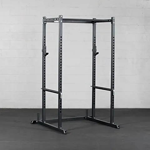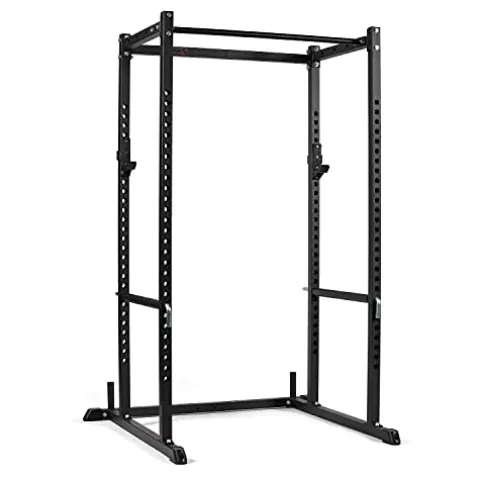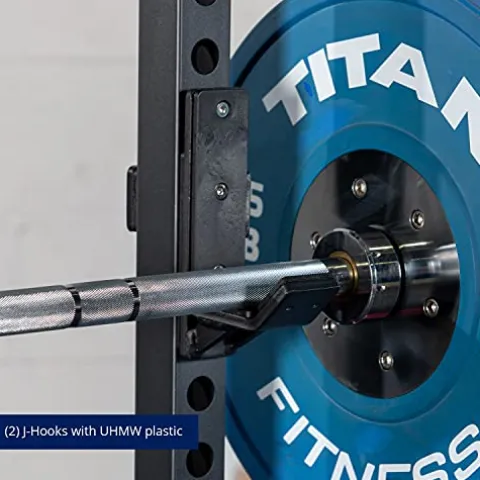 - Included: (4) heavy-duty steel uprights, (2) Pin and Pipe Safeties, (2) Weight Plate Horns, (2) J-Hooks with UHMW plastic, 1.25-inch Single Pull-Up Bar, and Assembly Hardware