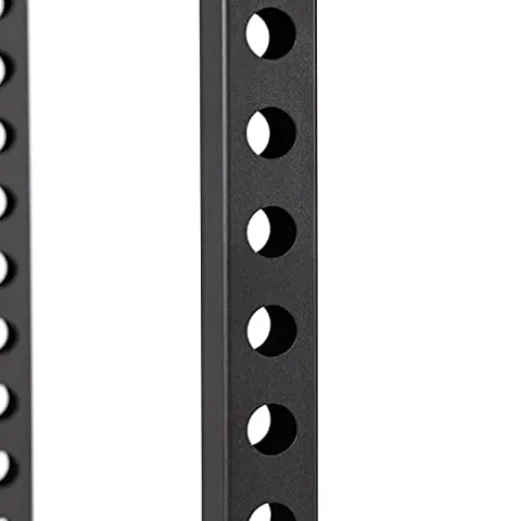 The Titan Fitness T-2 Series Power Rack stands tall at 83 inches high, offering a sturdy and reliable fitness solution for your home gym. Built with durable 2 x 2-inch 12-gauge steel uprights and featuring 1-inch holes spaced 2 inches apart, this power rack provides versatile options for your workouts. The rack comes complete with essential accessories such as (4) heavy-duty steel uprights, (2) Pin and Pipe Safeties, (2) Weight Plate Horns, and (2) J-Hooks with UHMW plastic for added protection. Additionally, the rack includes a 1.25-inch Single Pull-Up Bar and assembly hardware, making it a comprehensive and practical choice for strength training enthusiasts.