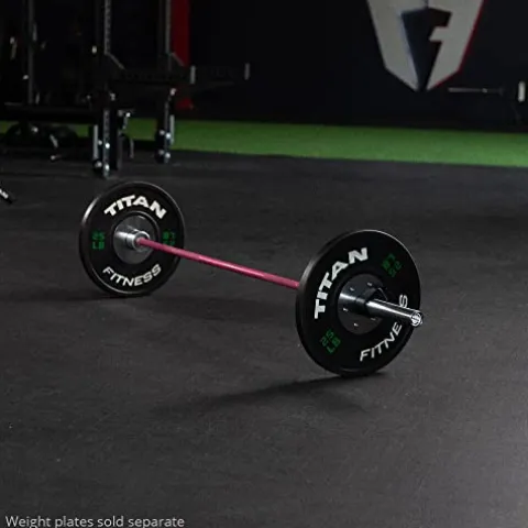 - DIMENSIONS: The TITAN Series Barbell measures 79.5-inches in overall length with a shaft diameter of 25 mm. The Olympic-sized weight sleeve measures 50 mm in diameter and offers 11.75-inches of loadable length with a capacity of 1,500-pounds, and weighs 15 KG or 33-pounds.