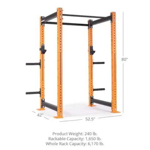 Enhance your weightlifting and strength training routine with the Titan Fitness X-3 Series 80″ Orange Bolt-Down Power Rack. This rack features a 1.25″ and 2″ pull-up bars, standard J-hooks with a 1,000-pound weight capacity, and weight plate holders for Olympic-sized plates. With a rackable capacity of 1,650 pounds and a total rack capacity of up to 6,170 pounds, the X-3 Series Power Rack ensures a safe and sturdy workout experience. Designed for durability and performance, this power rack from Titan Fitness is a must-have for serious athletes looking to take their training to the next level.