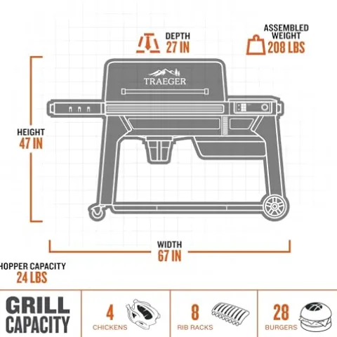 - Simple Cleanup – The Woodridge features the EZ-Clean Grease & Ash Keg by Traeger. When deep cleaning, simply wipe all your ash into the EZ-Clean Grease & Ash Keg, dump it out, replace the liner, and get back to cooking.