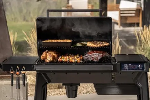 - Precision Temperature Control from 180-500°F – Equipped with a fully digital controller, this pellet smoker offers precise temperature control, perfect for smoking, grilling, baking, and searing. The Woodridge Pro digital controller includes upgrades like Keep Warm and Super Smoke modes to enhance your flavor and cooking experience.