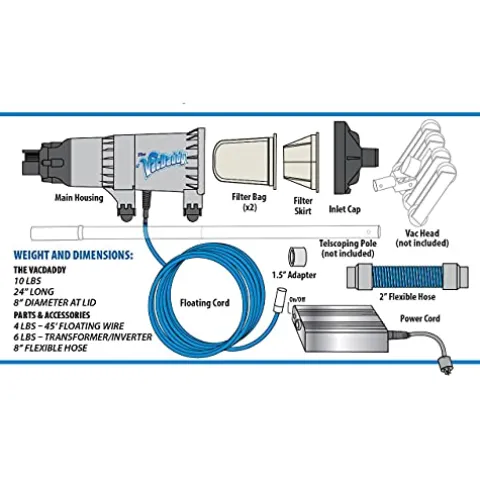 - STRONG & POWERFUL SUCTION POOL CLEANER: The VacDaddy provides 60+ GPM of suction to ensure to pick up more debris and larger debris than competing pool vacuums.