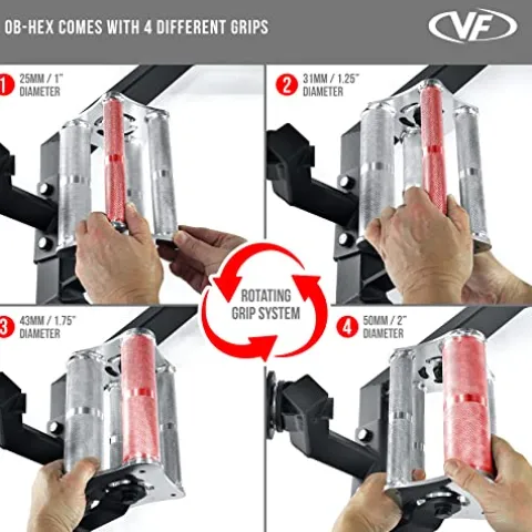 - ROTATING HANDLE: 4 rotating handles allow the user to choose which grip works the best and gradually work up to wider grips. Handles include 1”, 1.25”, 1.75”, and 2” diameter.