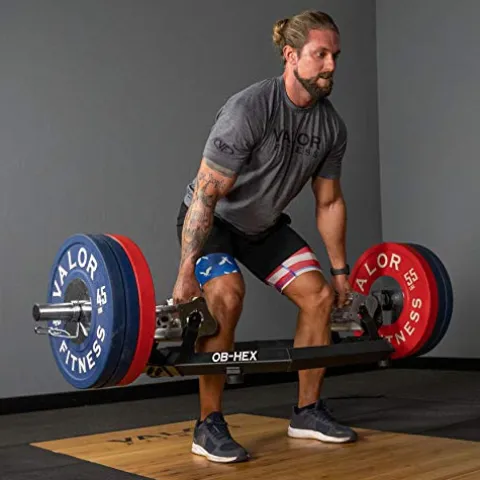 The Valor Fitness OB-HEX Super Hex Trap Bar is a versatile and innovative piece of equipment designed for serious weightlifters. With four rotating handles of varying diameters, users can customize their grip for optimal comfort and performance. The bar features rubber stoppers to protect gym floors, and its unique design promotes correct form and balanced lifting, reducing strain on the spine. Ideal for shoulder shrugs, squats, and deadlifts, this bar helps build muscle strength in the shoulders, back, and legs for a full-body workout. With a weight of 60 lbs and a max load capacity of 500 lbs, this trap bar is perfect for both individual and group training sessions.