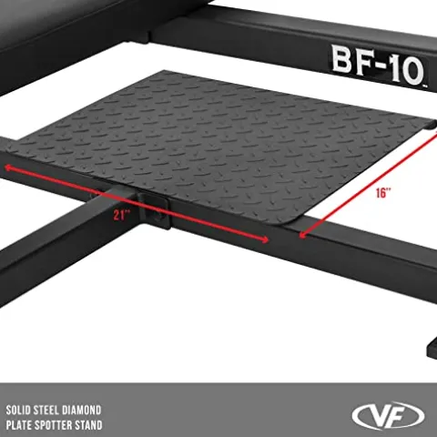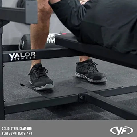 The Valor Fitness Heavy Duty Olympic Weight Bench Weightlifting Press Station – Diamond Plate Spotter Stand is a powerhouse for strength training enthusiasts. Constructed with 11-gauge steel and a 3” x 2” steel frame, this bench can withstand up to 770 pounds. Safety is paramount with heavy-duty J-hooks, adjustable safety bars, and a sturdy spotter platform. The rubber end caps provide stability and floor protection, while the comfortable dual-layer bench pad ensures a supportive workout experience. With versatile safety catch adjustments and a sleek, space-efficient design, this bench is perfect for powerlifting enthusiasts in any gym setting.