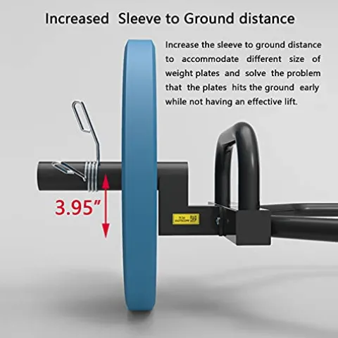 - Higher Sleeves: Increase the sleeve-to-ground distance, to accommodate different size of weight plates and solve the problem that the plates hits the ground early while not having an effective lift.