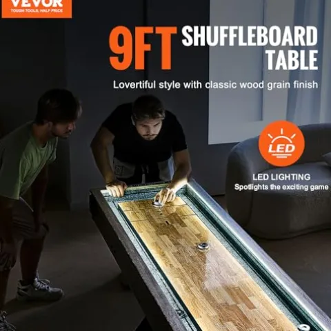 - 9 FT Shuffleboard Table: The 9-foot length provides ample space for exciting gameplay, while integrated LED lighting spotlights the action, making every game more thrilling and visually appealing.