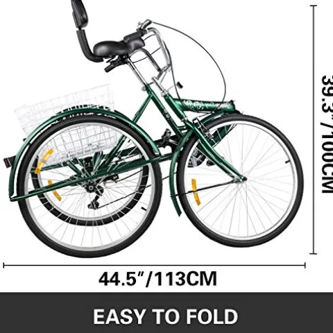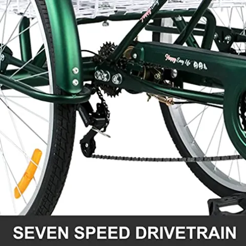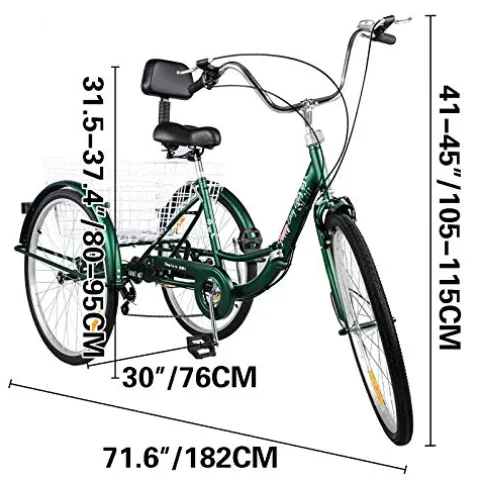 - 【DURABLE AND FOLDABLE】- 24” wheel 7-speed tricycle adult. With 3 wheels, stylish color, and a premium carbon steel frame, these 24-inch bicycles are durable and anti-rust. And it can be folded for easy move and storage. Load capacity: 110kg/220lbs.
