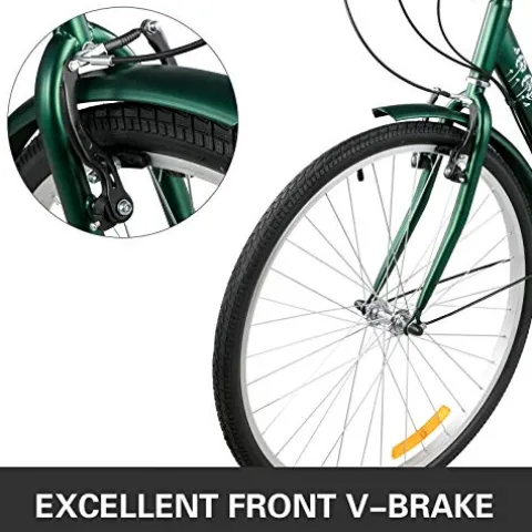 - 【FRONT AND REAR BRAKES】- This three wheel bike for adults has one front V brake to stop riding immediately. The front and rear brakes give you double protection. We also offer you a handy pump to inflate the bike.