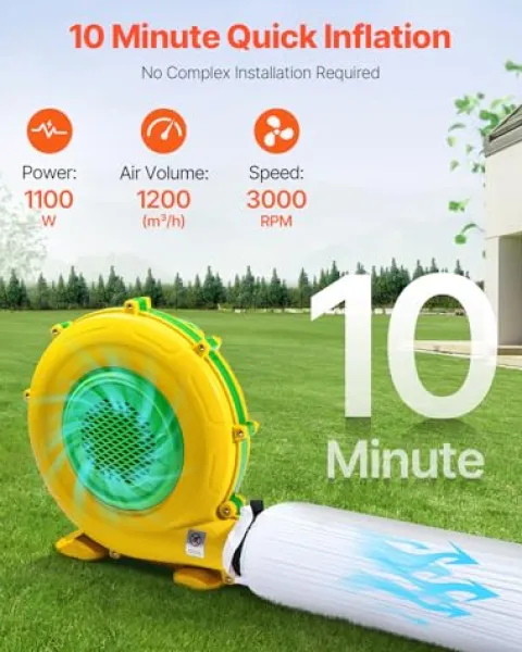 - Quick Inflation: Equipped with a powerful 1100W blower, it inflates in just 10 minutes, saving time and allowing for convenient setup on lawns, beaches, or backyards.