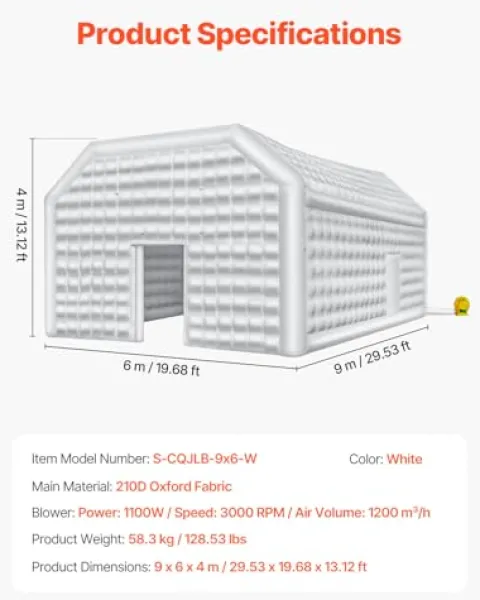 - High-Strength Materials: Constructed from durable 210D Oxford fabric, this inflatable party tent is waterproof and windproof, capable of withstanding unexpected weather changes (light rain or wind) to ensure your event goes smoothly.