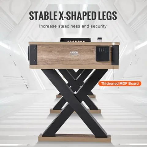 - Stable X-Shaped Legs: The shuffle board game table features thickened MDF board and X-shaped legs, increasing steadiness and security. This robust construction ensures a solid playing experience, allowing you to focus on your game without any worries about the table’s stability.