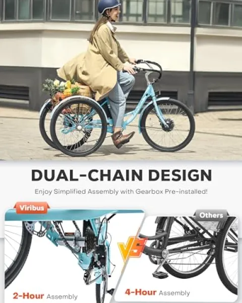 - Go Further: Soak up the sights while looking good with Viribus’s 26 in. electric tricycle! With a theftproof and UL certified 36V 13Ah battery that provides a full-throttle range of 31 miles, getting you wherever you need to go has never been easier!