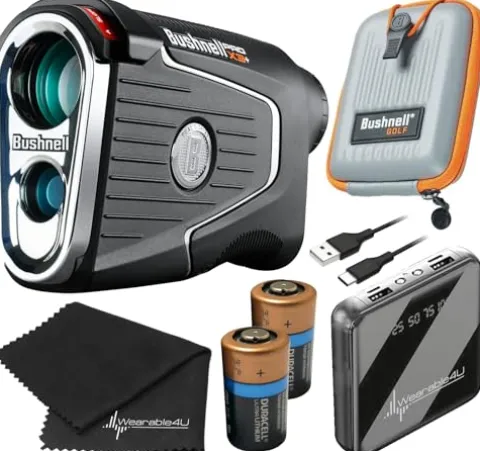 - IN THE BOX: 1x Bushnell Pro X3+ Laser Rangefinder, 1x Carrying Case, 1x Washable Micro-fiber cloth, 2x CR2 Batteries, 1x Wearable4U Cleaning Cloth, 1x Wearable4U Power Bank (wa001), 1x Quick Start Guide