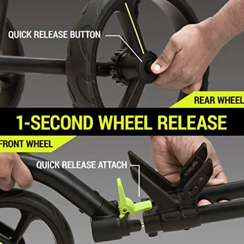 - 1-Sec Wheel Release – Easily removable wheels (a quick release button for the rear wheel and quick release attach design for the front wheel), a simple assembly design and the additional magnetic fasteners combined with the overall features to make it a truly unique cart.