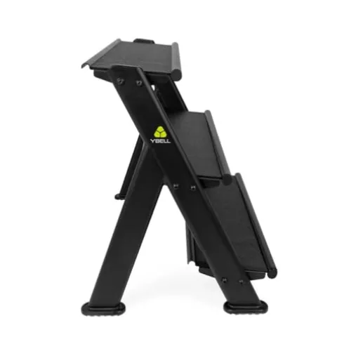 - Features 3 tiered shelving with side-by-side or “daisy-chain” capabilities, allowing for versatile YBell storage configurations, suitable for both home and commercial settings.