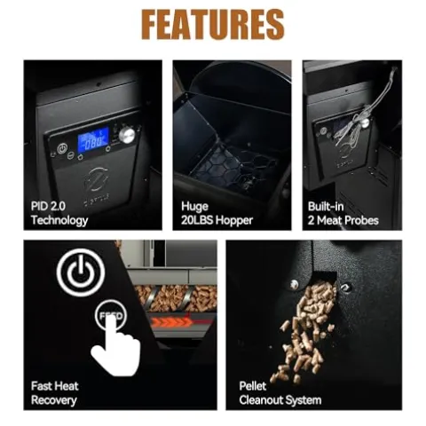 - VERSATILE COOKING – Unlock culinary excellence with our 8-in-1 Pellet Grill & Smoker, offering functions such as smoking, searing, baking, and more. Whether you prefer hot and fast or low and slow cooking, this grill has you covered.