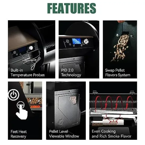 - BUILT TO LAST – Sturdy steel construction with a high-temperature powder coating finish makes the pellet grill long-lasting