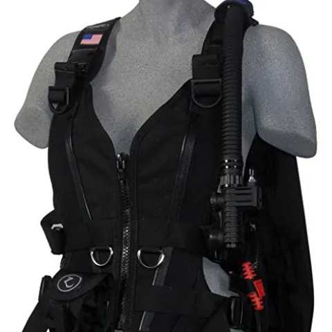 The Zeagle Zena w/Inflator, Hose, and RE Valve – XL is a top-of-the-line choice for divers seeking both comfort and functionality. Designed by Zeagle, known for quality, this black BCD features elastic front panels with a zipper closure for a snug and streamlined fit. Dual waistbands provide optimal weight positioning for enhanced comfort and balance underwater. With a 31lb capacity bladder, 24lb Ripcord weight system, and 16lb rear mount weight system, this BCD offers ample storage for weights. Plus, the expandable mesh “Quick Pocket” at the waist and 4 Stainless Steel D-Rings add convenience and versatility to your diving experience. Dry Weight: 6.2 lbs.