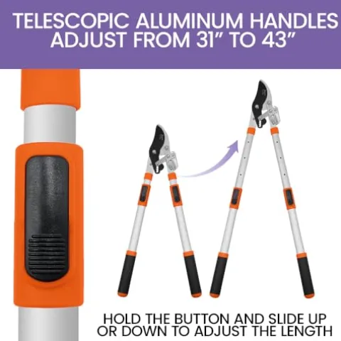The Zenport LRT10-12PK Hand Lopper combines efficiency and comfort for all your gardening needs. Featuring a ratchet cutting action, this tool makes it easy to tackle green or dry branches up to 2 inches thick, ensuring clean cuts with minimal effort. The telescoping handle extends from 23.5 inches to 35.8 inches, providing versatility for different tasks and user heights. With a vibrant orange color for easy visibility, this box of 12 loppers is perfect for landscaping professionals or avid gardeners looking to enhance their tool collection. Experience effortless pruning and trimming with the Zenport LRT10 Hand Lopper.